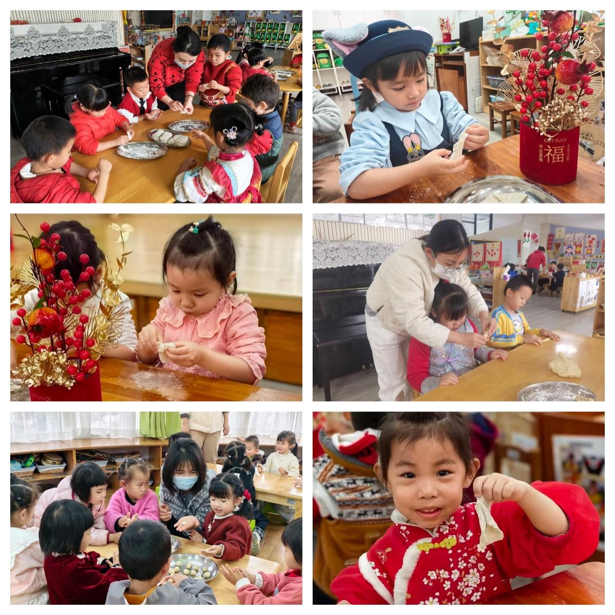 1 月 29 日“巧手做年食・劳动迎新年” 活动拉开了散学典礼的序幕。各班教室里年味十足,孩子们化身 “小小美食家”,跟老师们一起制作传统年食。小班宝贝们揉制笑口枣,寓意 “笑口常开、平安喜乐”;中班幼儿巧手制作蛋散,寄托 “岁岁平安、生活美满” 的期许;大班哥哥姐姐则合作搓制麻花,象征 “顺顺利利、团团圆圆”。从按揉、搓压面粉,到指尖细细捏揉塑形,孩子们的每一个小动作都满是专注与好奇。在动手实践中,他们不仅掌握了基础的制作技能,更在分工协作里真切体验到动手的乐趣,感受着传统美食文化的独特魅力。