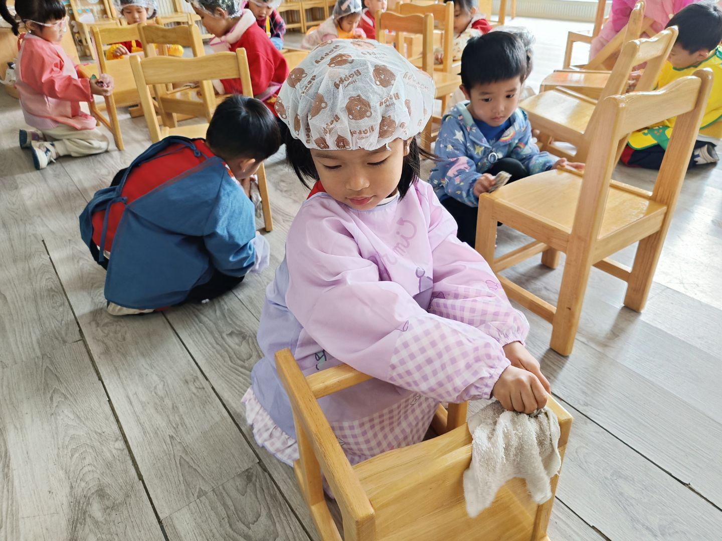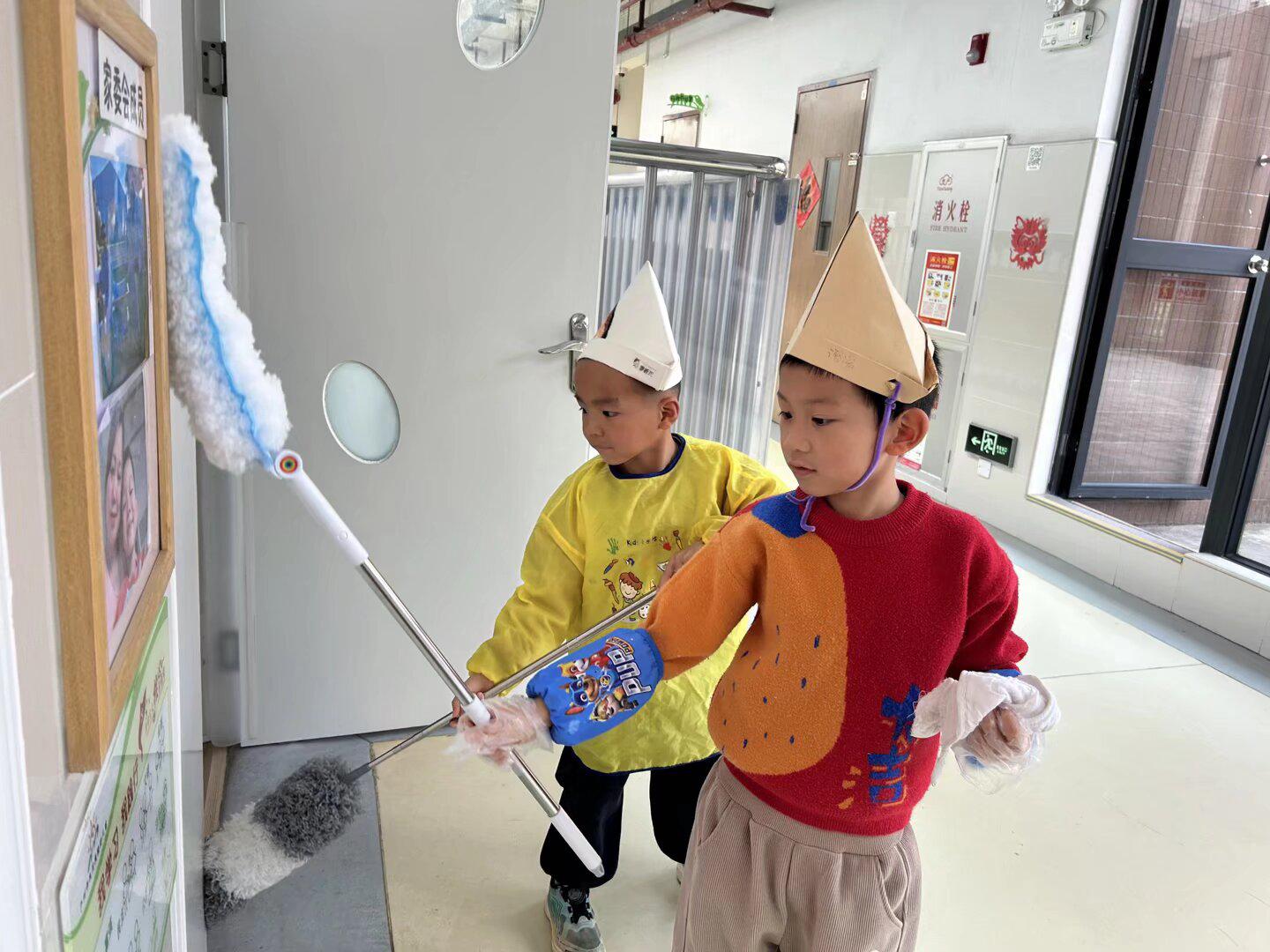 年食制作后,“除尘迎新” 劳动活动温馨开启。老师们通过趣味故事、动画短片,向孩子们传递 “除旧布新、迎接福气” 的民俗寓意。小班弟弟妹妹以整理个人物品为主,建立 “物归原位” 的意识;中班 “清洁小卫士” 们认真清洗拖鞋、擦拭座椅;大班幼儿则分组合作整理班级公共区域,在劳动中培养责任感与合作能力。