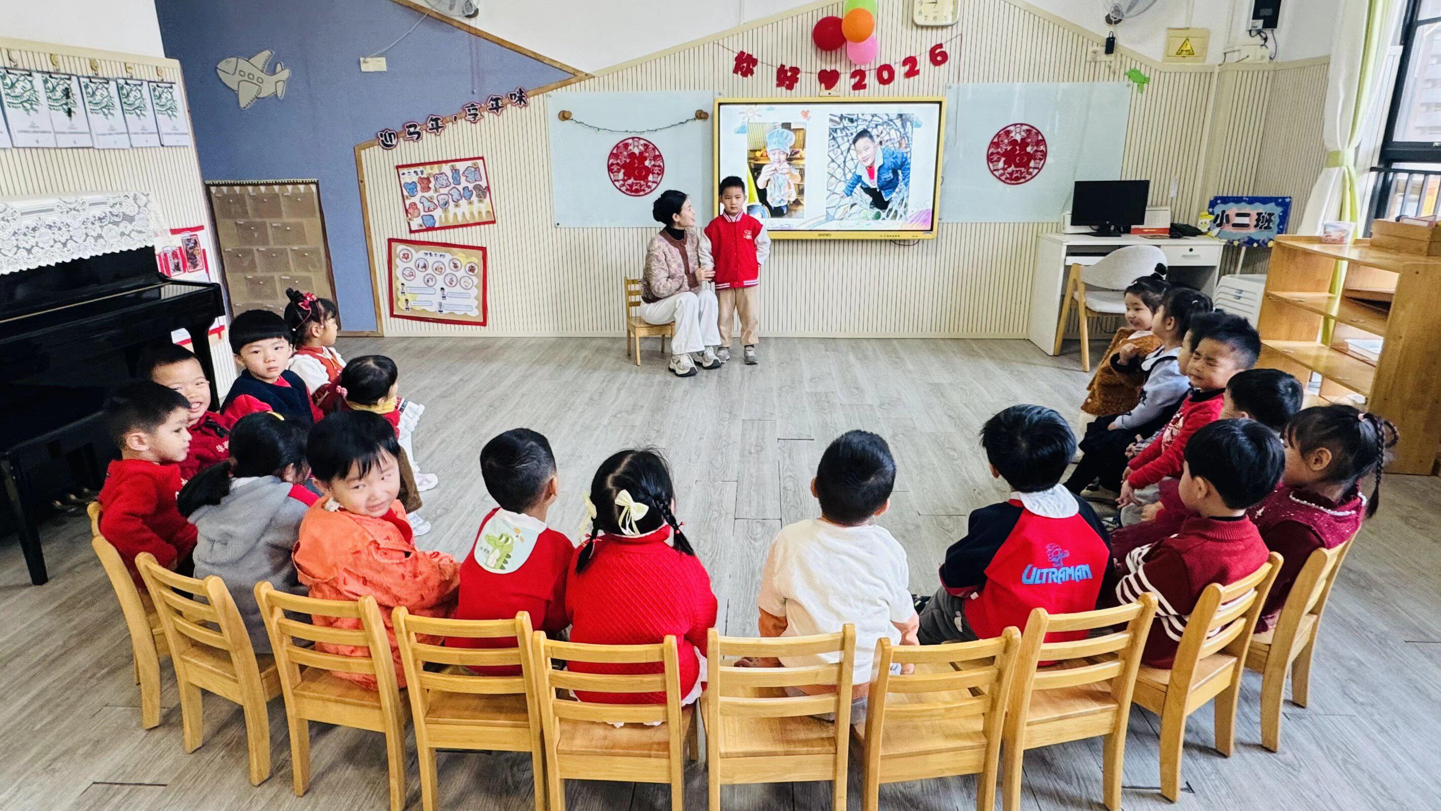 1 月 30 日,“温情忆成长・游园庆新年”活动让园区洋溢着欢声笑语。上午,师生一同回顾本学期的成长点滴。伴随着学期活动视频与照片集的播放,孩子们日常学习、游戏互动、户外探索、节日欢庆的珍贵瞬间一一浮现。老师们带着孩子们重温慈善义卖里的温暖瞬间、运动会上的奋力拼搏,在共同回味的过程中,让大家真切感受成长的美好与喜悦。