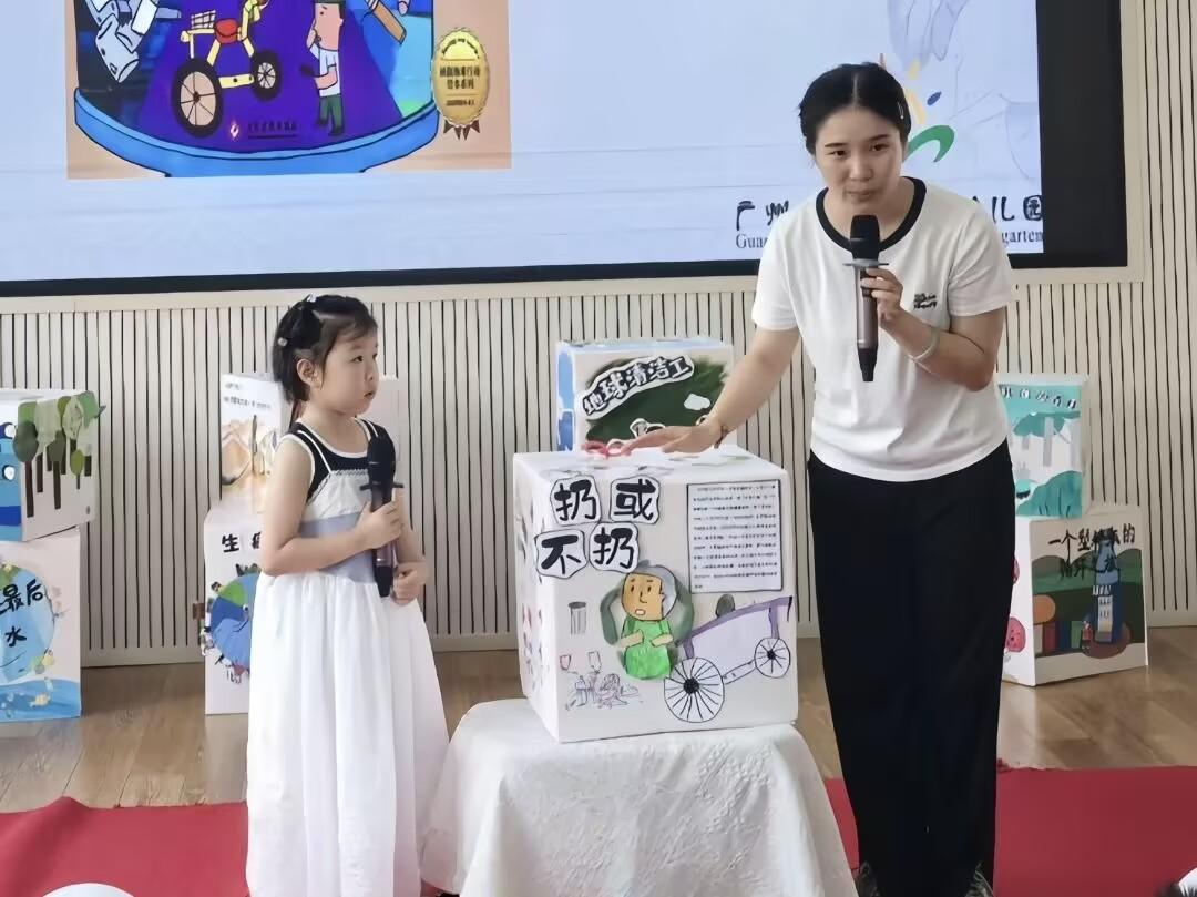启动仪式上,师幼同台献艺,亮点纷呈。孩子们唱响环保粤语童谣,教师带来环保主题故事;最受期待的AI 故事首秀生动亮相,双语互动讲故事新奇有趣,将阅读、环保、科技、岭南文化完美融合,赢得阵阵掌声与欢呼。